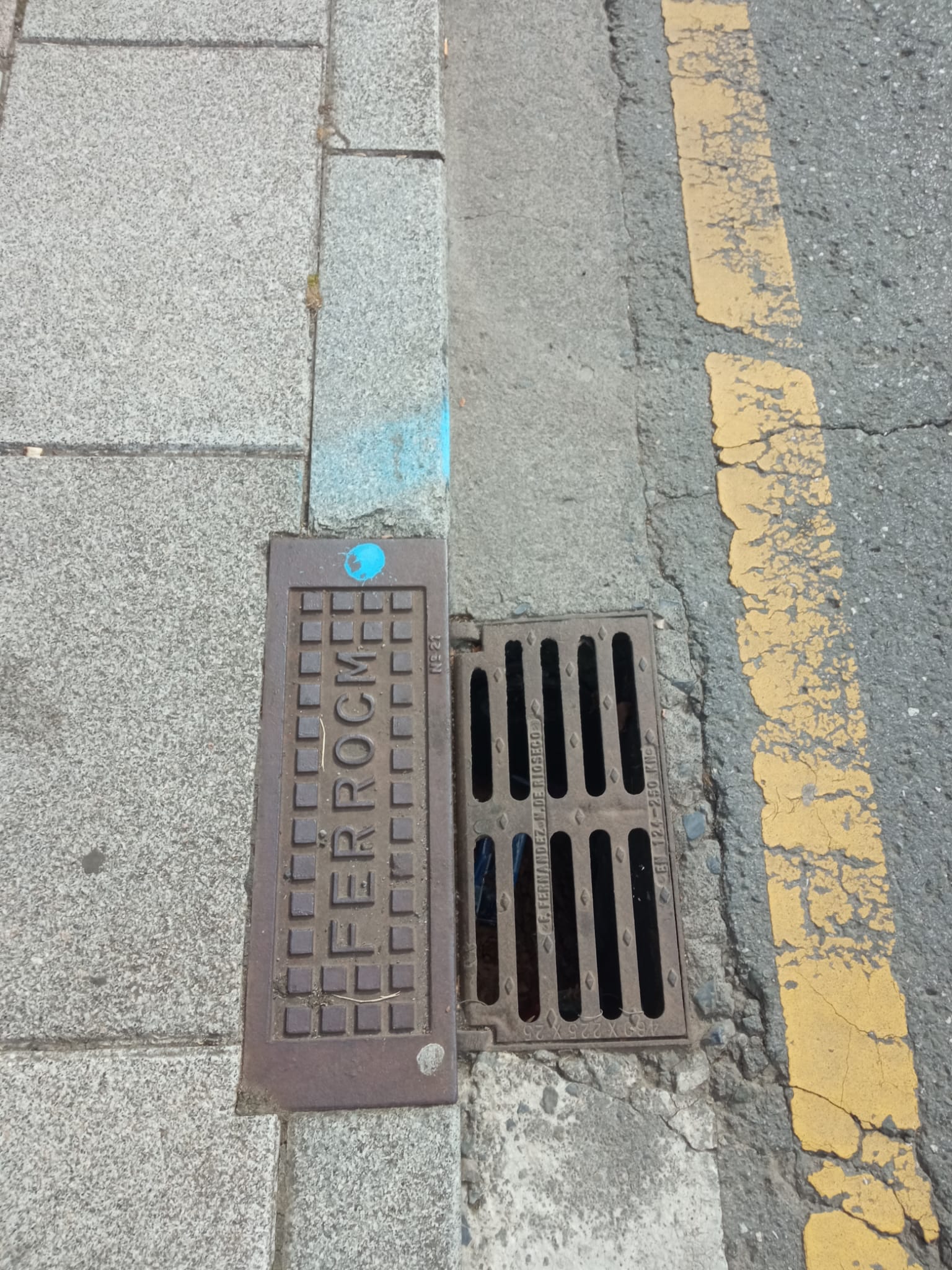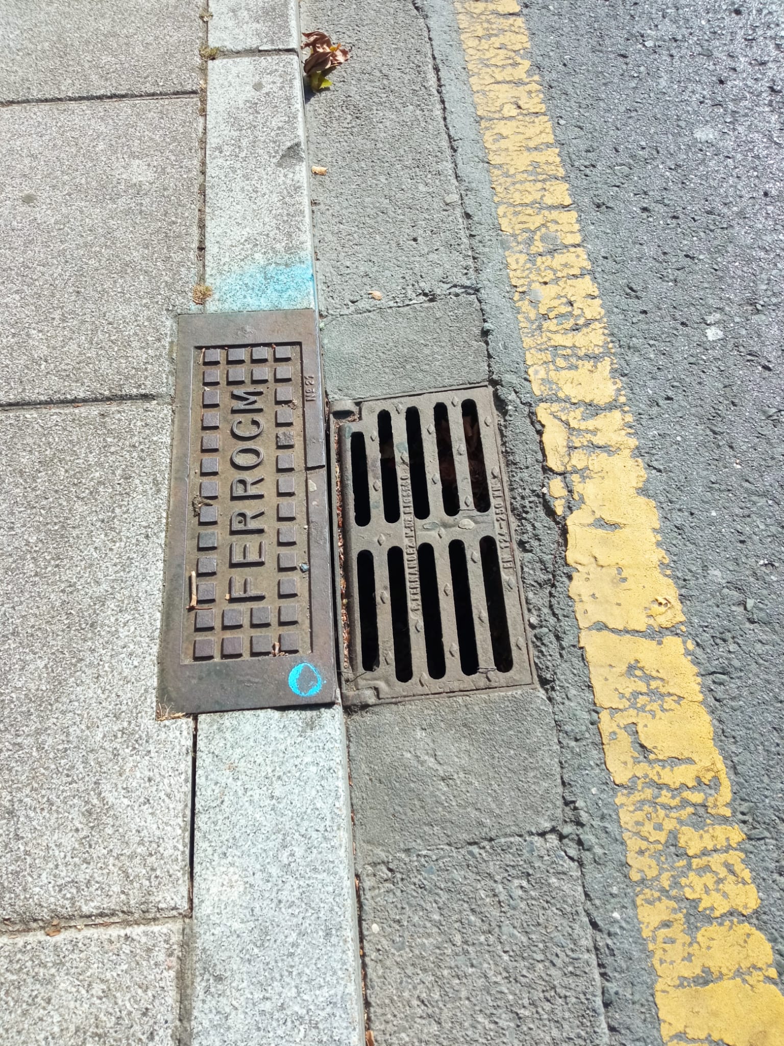 2.- También nos consta que ya se están llevando a cabo intervenciones. Para saber en qué sitios se han focalizado los esfuerzos podéis identificarlos en las alcantarillas en las que veáis un punto de spray azul (🔵). Estas fotos son del mes pasado, por ejemplo.